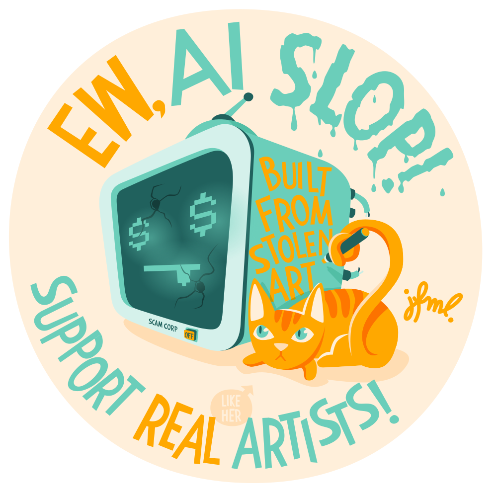 #JfmlArt #art #illustration #creative #DigitalArt #FediArt #CreativeToots #ArtWithOpenSource #MastoArt #ArtistsOnMastodon #inkscape #vectorArt #cat #CatsOfMastodon #robot #sticker #ArtMadeByHuman #NoAI #AI #AISlop #HumanArt #FuckAI #BoycottAI #anticapitalism #MakeTheRichPay #typography